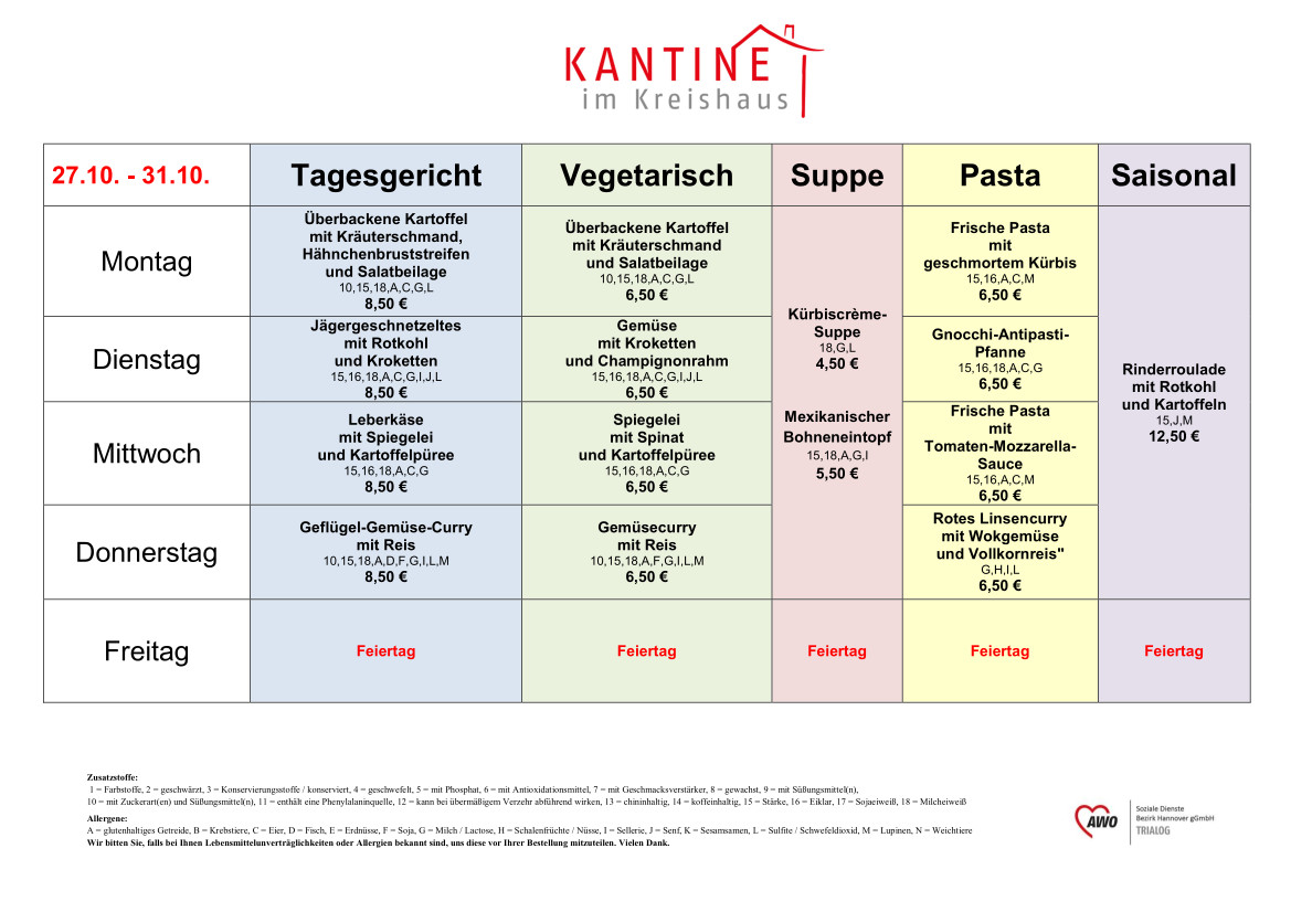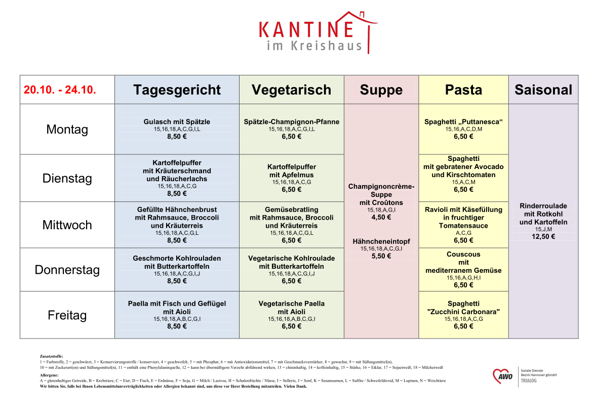 Liebe Gäste, die Kantine im Kreishaus hat geöffnet: