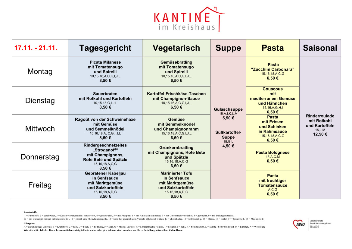 Liebe Gäste, die Kantine im Kreishaus hat geöffnet: